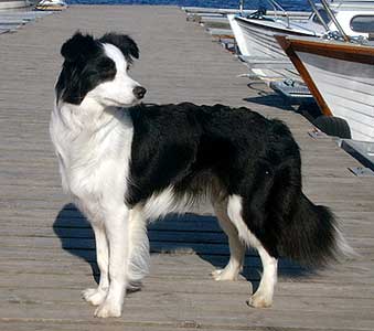 black and white bitch DOB 3.1.2002 co-bred with Leena Uusitalo co-owned with Salme Räsänen